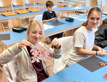 V hodině chemie si žáci vyzkoušeli, že chemie může být i krásně vánoční. Pomocí papírové chromatografie vytvářeli originální přání s motivem sněhové vločky. Na filtrační papír nakreslili jednoduché tvary fixou, vložili ho do vody a sledovali, jak se barvy rozestupují do jemných zimních odstínů. Experiment žákům ukázal, že fixy obsahují směs pigmentů, které se při chromatografii oddělí a vytvoří efektní barevné přechody. Každý si nakonec odnesl vlastní vánoční přání – spojení vědy, kreativity a sváteční atmosféry.SP