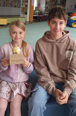 Ahoj! Lukáš ze 7. ročníku je nejenom zdatný hasič, ale i výtečný organizátor. Pro malé děti v jedné části Jirkova zorganizoval pouliční florbalový turnaj, a sám dokonce vyrobil ocenění v podobě florbalového míčku. Lukáš patří mezi skromné žáky naší školy, nedozvěděl bych se to, kdyby mi radost ze hry a z vítězství nepřišla oznámit Leontýna ze 3. třídy. A tak jsem dnes nabyl dobrého dojmu, že k nám dochází dobří a šikovní žáci, chlapec, co nezištně uspořádá pro menší děti sportovní odpoledne a děvče, které je ze hry tak nadšené, že neváhá sdělit své nadšení i nám a pochlubit se po domácku vyrobenou cenou. Leontýno a Lukáši, máme z vás radost, jste opravdu dobří! JD