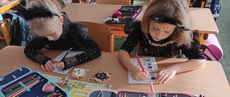 Prvňáčci se dozvěděli něco o tom, jaké jsou tradiční znaky Halloweenu a samozřejmě se také oblékli do strašidelných kostýmů. Poprvé si vyzkoušeli běhací diktáty z ČJ i M. Doplňovali číselné řady, dokreslovali počet obrázků podle hracích kostek, zapisovali příklady dle obrázkového znázornění, hledali stejné slabiky, vyznačovali počet slabik. Maminka Filípka H. napekla pro celou třídu vynikající dýně z lineckého těsta. Patří jí za to veliký dík, protože dětem velice chutnaly. Druhou vyučovací hodinu žáčci nadšeně plnili v tělocvičně zajímavé a pestré úkoly na téma Halloween, které pro ně velmi perfektně připravili starší spolužáci z 9. A, těm patří poděkování, ale nejen jim, také hlavním organizátorkám I. Svatošové, L. Čermákové. ŠL