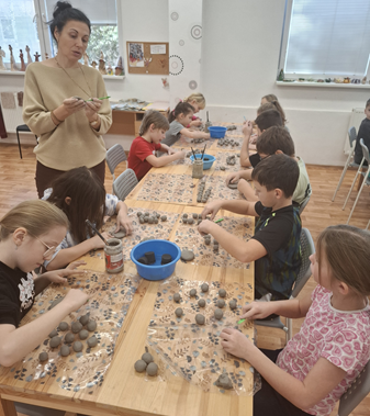 3. A byla na keramice v DDM Paraplíčko, kde si všichni vytvořili krásné mističky. LV