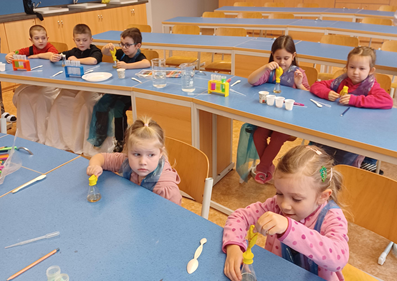 Ve středu 9. 12. jsme na naší škole s radostí přivítali děti z mateřské školy, které k nám přišly strávit dvě hodinky zábavných pokusů. Pro malé badatele byl připraven program, během kterého si mohli vyzkoušet, jaké to je být na chvíli malými vědci. O překvapení se postaral i Duch Vánoc, který byl zavřen v láhvi a děti si ho zavolaly. Tvořily si vločku, ozdobu, samonafukovacího sněhuláka a spoustu dalších pokusů. SP