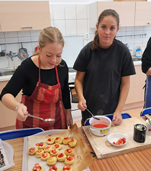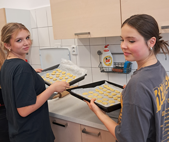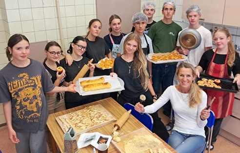 V pátek před 40. výročím školy si žáci z 9. A oblékli zástěry a celých šest vyučovacích hodin strávili v kuchyňce naší školy. Vařili, pekli, smažili, zdobili a s úsměvem na rtech vytvořili pokrmy ze 17 různých receptů. Dobroty se připravovaly na sobotu pro Den otevřených dveří a měly velký úspěch. Deváťákům patří velká pochvala za neúnavnou práci, nadšení a spolehlivost. PJ
