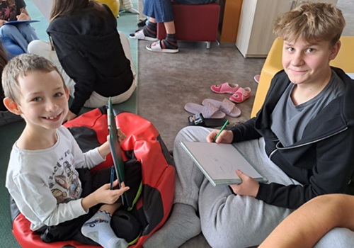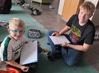 Prvňáčci a deváťáci se vzájemně portrétovali