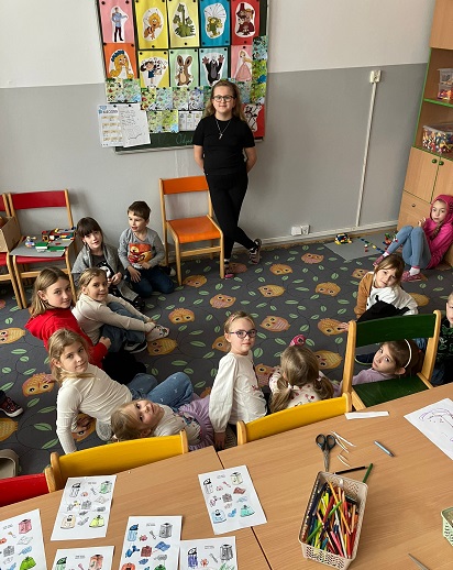 Ve dne 25.11. jsme v družině s paní učitelkou Janou Kužminskou a s dětmi z 1. B a s dětmi z 3. A jsme si povídali o třídění odpadu. Nejprve nám paní učitelka rozdala omalovánku na vybarvení. A pak nám řekla, že se máme vžít do toho obrázku a být jako ty děti. Až jsme si všichni omalovánku vybarvili, tak jsme si udělali z toho nástěnku. A pak jsme si povídali s paní učitelkou, kam se dává papír, kam se dává plast a kam se dává sklo. Poté jsme spolu s paní učitelkou vysvětlili dětem kam patří různé odpadky. A pak jsme si vysvětlili, že se v lese nesmí odhazovat nedopalky, plechovky, kapesníky a další různé odpadky. Po rozhovoru si děti šly vymalovat další omalovánku, která znázorňovala barvy popelnic na třídění odpadu, kam patří který odpad. Jako papír do modré popelnice, plast do žluté popelnice a sklo do zelené popelnice. Ema Bobysudová ze 4. A.