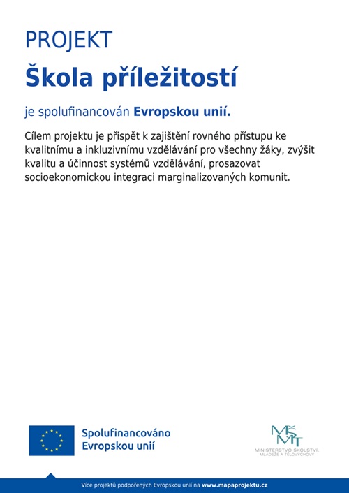 Naše základní škola a školní družina společně realizují projekt podpořený z výzvy MŠMT č. 02_24_034 Šablony pro MŠ a ZŠ II, operačního programu Jan Amos Komenský.