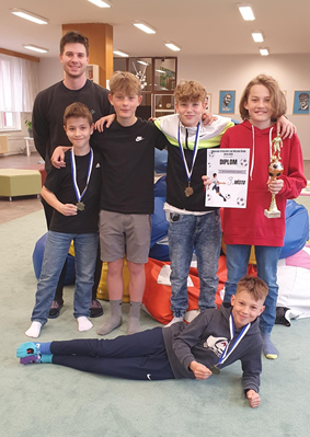 Ve středu 3. prosince proběhlo školní kolo 55. ročníku dějepisné olympiády, jejíž tematické zaměření bylo: „Dvě strany téhož příběhu: Jak muž a žena kráčeli dějinami – spolu, proti sobě i vedle sebe.“ Školního kola zúčastnilo celkem 21 žáků z osmých a devátých ročníků. Přihlášení žáci samostatně vypracovávali zadané úkoly v písemném testu, který obsahoval celkem 15 úkolů. Úspěšným řešitelem byl soutěžící, který dosáhl alespoň 60 % všech bodů v testu, tzn. 48 bodů z celkového počtu 80 bodů. Vítězem školního kola se stala Karolína Wendová z 8.B, která dosáhla počtu 75 bodů. Na postupovém druhém a třetí místě se umístila Liliana Kaiserová a Lukáš Kinter také z 8.B. Třem postupujícím ze třídy 8.B gratulujeme a přejeme jim úspěšný průběh okresního kola, které se uskuteční v lednu v Chomutově. Žáci na fotografii obdrželi drobné odměny. IS