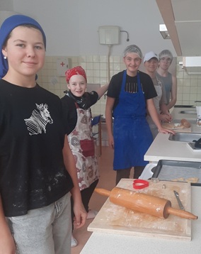 Začátkem prosince proběhnou na náměstí v Jirkově charitativní adventní trhy, proto ve škole v rámci pracovních činností a výtvarné výchovy nejen tvoříme výrobky, ale také pečeme perníčky a linecké cukroví. Tentokrát jsme se domluvili se žáky 8. A na odpoledním pečení. Na poslední chvíli několik žáků onemocnělo a někteří usoudili, že mají na odpoledne lepší zábavu. Proto velké poděkování patří pěti šikovným žákům, kteří nejen vykrajovali, počítali a pekli linecké cukroví, ale také balili již hotové perníčky. Všichni jsme si užili pohodovou atmosféru ve školní kuchyňce. LH