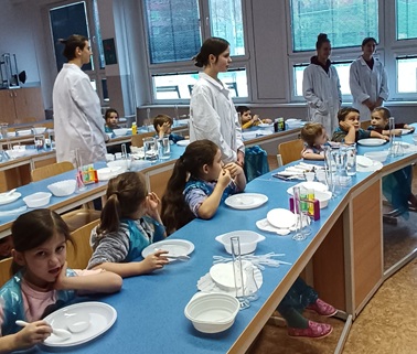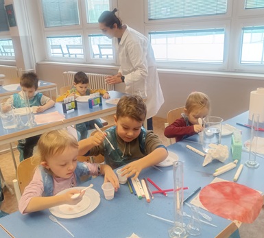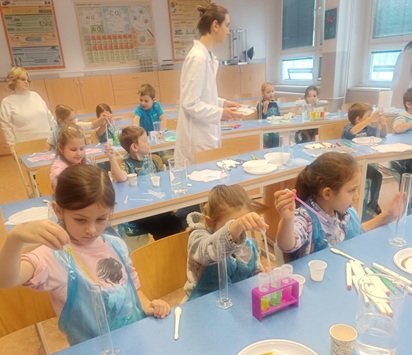Ve středu dopoledne jsme na naší škole přivítali předškoláky z mateřské školky, kteří k nám zavítali na ukázkovou hodinu chemických pokusů. Pro děti byla připravena zábavná a bezpečná prezentace, během níž si mohly vyzkoušet, jak barevná a hravá může chemie být. Předškoláci byli velmi zvědaví a aktivní, k ruce jim byli naši deváťáci. Doufám, že si děti odnesly nejen pěkný zážitek z bádání. SP