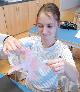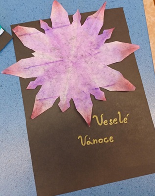 V hodině chemie si žáci vyzkoušeli, že chemie může být i krásně vánoční. Pomocí papírové chromatografie vytvářeli originální přání s motivem sněhové vločky. Na filtrační papír nakreslili jednoduché tvary fixou, vložili ho do vody a sledovali, jak se barvy rozestupují do jemných zimních odstínů. Experiment žákům ukázal, že fixy obsahují směs pigmentů, které se při chromatografii oddělí a vytvoří efektní barevné přechody. Každý si nakonec odnesl vlastní vánoční přání – spojení vědy, kreativity a sváteční atmosféry.SP