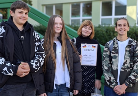Na začátku října se nadějní překladatelé a tlumočníci sešli ke každoroční soutěži zvané Jeronýmovy dny, na kterou vyslaly své zástupce školy z Chomutova a Jirkova. Ti naši se v konkurenci šikovných jazykářů neztratili. Eva Ž. si po zdařilém výkonu odnesla diplom a cenu za 3. místo. A Karel M. se díky přesnému tlumočení vyhoupl na „bramborovou“ 4. příčku. Možná, že v době AI se překlady nikdo z nich živit nebude, ale schopnost porozumět anglickému nebo německému sdělení a převést ho do čtivé mateřštiny se jim bude hodit celý život. Gratulujeme. MŠ