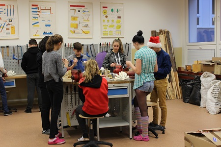 Žáci druhého stupně se zapsali do jednotlivých dílen podle svých zájmů. Čtyři hodiny utekly jako voda a všichni jsme si to užili. Pátou hodinu jsme se sešli v síni tradic a každá dílna předvedla výsledky své práce. Ochutnali jsme kuchařské umění, zhlédli jsme anglické divadlo a novináři předvedli zvláštní vydání novin. Nejen druhý stupeň, ale celá škola žila Vánocemi. Každá třída na 1. stupni si připravila vánoční besídku. Děti si přinesly cukroví, dávaly si vzájemně dárky, zpívaly koledy, hrály hry a soutěžily. Samozřejmě ani kuchařky nezůstaly pozadu a připravily nám tradiční řízek se salátem.