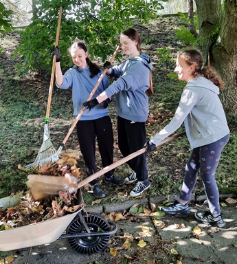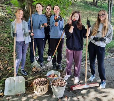 V rámci hodin pracovních činností využíváme slunečného počasí ke sklizni mrkve, jablek, sběru vlašských ořechů a samozřejmě k hrabání a zametání spadaného listí na školním pozemku. Nezapomínáme též na zalévání bylinek ve skleníku. Přestože nás dnes bylo ve třídě málo, udělali jsme kus práce. 7. B a LH