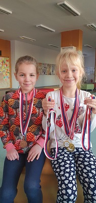 Ahoj! Nevidíte špatně ani dvojmo, na fotografii je Veronika a Šárka, sestry a každá z nich ovládá bravurní přednes krásného slova, proto také jedna z nich, Veronika, z 1. místa postupuje do krajského kola v přednesu dětských recitátorů a druhá, Šárka, získala za originální předání textu čestné uznání. Markétka zase dopomohla své taneční skupině ladnými pohyby ke zlatu. Gratulujeme!