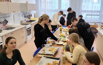 Žáci třídy 9. B si v hodině anglického jazyka vyzkoušeli netradiční aktivitu – společné pečení amerických sušenek (American cookies). Cílem nebylo jen upéct něco dobrého, ale také si procvičit angličtinu v praxi a zároveň se seznámit s malým kouskem americké kultury. Během hodiny žáci pracovali s receptem v angličtině, učili se názvy surovin, kuchyňských pomůcek i jednotlivých postupů při pečení. Společně si rozdělili úkoly, připravili těsto a nakonec si pochutnali na vlastnoručně upečených sušenkách. Aktivita byla nejen chutným zpestřením výuky, ale také příležitostí ukázat, že angličtina není jen o učebnicích, ale může být součástí každodenních činností. Žáci si odnesli nejen nové slovní zásoby, ale i příjemný společný zážitek. Věřím, že podobné praktické aktivity pomáhají žákům vidět jazyk v reálném kontextu a zároveň podporují spolupráci ve třídě. LC