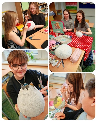 Jaro dorazilo už i do tříd. Na hodině výtvarné výchovy se žáci pustili do netradičního tvoření. Pomocí balonků vyráběli originální 3D tulipány, které zaujmou svou barevností i nápaditým zpracováním. Práce probíhala společnými silami – žáci si navzájem pomáhali, sdíleli nápady a spolupracovali při jednotlivých krocích tvorby - někteří (jak už to tak bývá) však přispívali hlavně radami 🙂. Každý tulipán je jedinečný a výsledkem je pestrá kytice, kterou nyní můžete potkat na chodbě naší školy. Klára