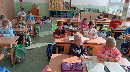Prvňáčci si v hodině matematiky procvičovali řetězové příklady hravou formou. Pomocí barevných myšek řešili jednotlivé početní kroky navlékáním korálků na myší ocásky. Děti pracovaly s velkým nadšením a aktivita je velmi bavila. Spojení počítání s manipulací s pomůckami jim pomohlo lépe pochopit postup řešení a zároveň rozvíjelo jejich soustředění i jemnou motoriku. Matematika tak byla nejen o číslech, ale také o radosti z objevování a společné práce. ŠL