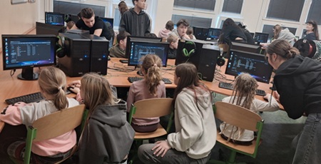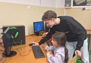 Žáci 9. A "Patroni" pomohli 1. A s jejich první hodinou informatiky. Rozvoji digitálních kompetencí se věnujeme krůček po krůčku. Prvňáky jsme učili pohyb myší, orientaci na ploše, klávesnici a zkusili jsme i výukový program kreslení. IS 9. A + ŠL 1. A