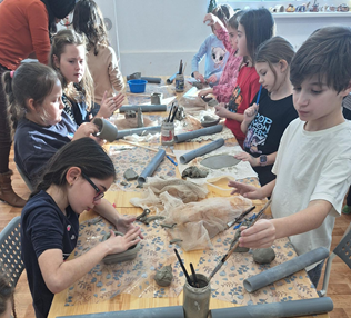 Děkujeme DDM Paraplíčko za možnost absolvovat kroužek keramiky, kde jsme se za pololetí naučili, jak pracovat s hlínou, jak vše správně slepit šlikrem a jak správně keramiku glazovat. Pod vedením Saši (paní ředitelky Alexandry Zdeňkové) vznikly v rukách žáků IV.oddělení krásné výtvory, které nám budou připomínat, jak báječné je pracovat s hlínou a jak jsme šikovní. Děkujeme, moc jsme si tvoření užili! KK