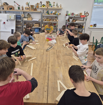 Dne 15. 4. byla třída 3. A v Paraplíčku. Děti si vyzkoušely práci se dřevem. Děvčata vyráběla panenky a chlapci domečky na klíče. V druhé části se děti dozvěděly, jak pracují elektrárny a vyzkoušely si zapojit elektrický obvod. LV